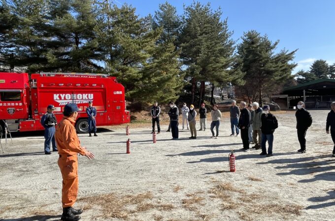 北杜市観光協会小淵沢支部会員の小規模宿泊宿を対象に山梨県立馬術競技場に一角をお借りして消防訓練が開催されました 峡北消防本部北杜消...